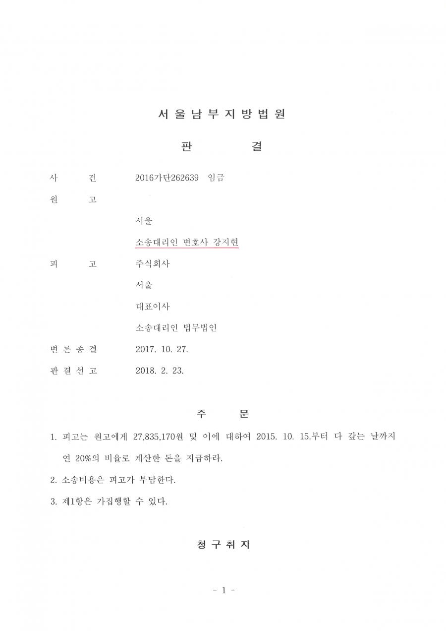 - 사건 : 서울남부지방법원 2016가단262639 임금